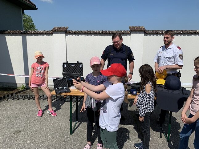 Bei strahlendem Sonnenschein marschierte die 3. Klasse zur Autobahnpolizei. Dort waren von den PolizistInnen tolle Stationen vorbereitet. Die Kinder konnten dabei viele interessante Details zur Polizeiarbeit kennen lernen: Fingerabdrücke sichtbar machen, Ausstattung eines Polizeiautos, Geschwindigkeitsmessungen, Methoden bei Verfolgungen und Einsätzen. DANKE für diesen lehrreichen und interessanten Vormittag!